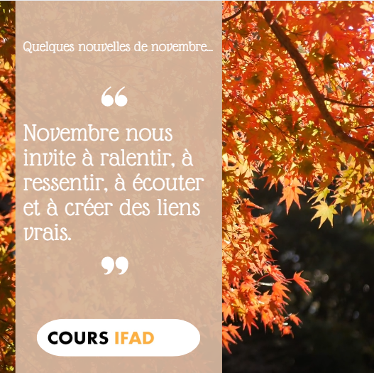 Novembre nous appelle à faire une pause consciente. C’est un mois pour affiner nos liens, prendre soin de nos ressentis et coopérer avec plus de finesse.
